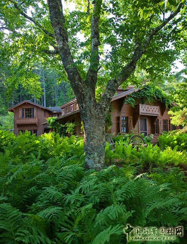 作為格蘭德小屋的姊妹建筑,小木屋始建于1916年,這兩間歐洲風格的折衷派夏季避暑小屋均坐落于緬因州的荒山島上。小木屋后被遷移,獨立成一棟建筑。