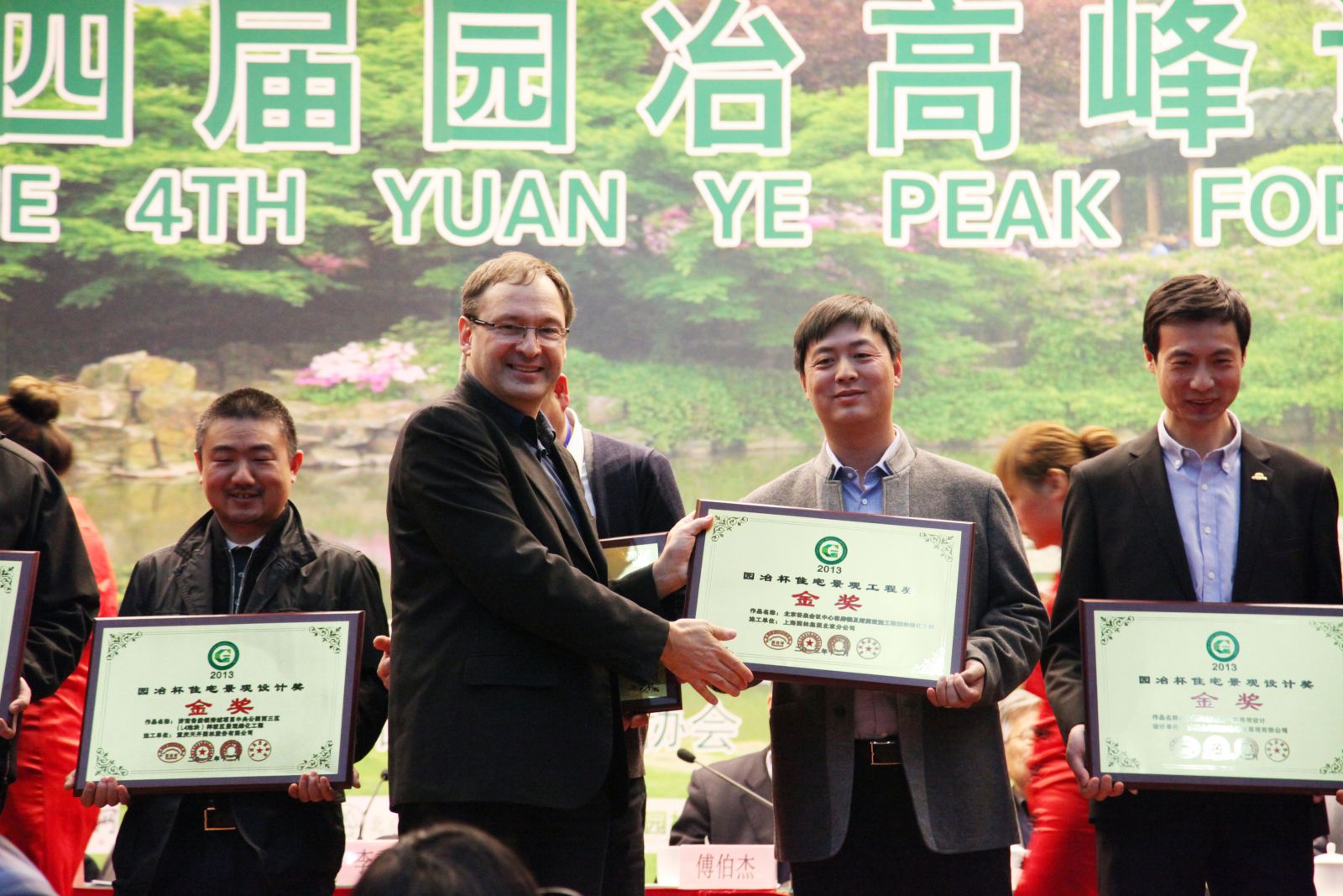 國際著名景觀設計師亨利·巴瓦(左2)為獲獎企業頒獎