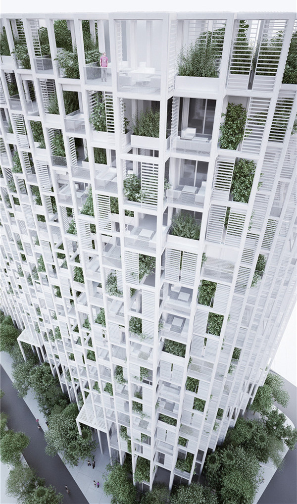 城市在經(jīng)歷無節(jié)制且盲目的商業(yè)開發(fā)浪潮后,如何喚醒個體在城市中的獨立特征和空間靈活彈性成為了建筑師反思的重點。因此,Penda在思考如何在本案中運用現(xiàn)代建筑技術同時,將能夠為個體創(chuàng)造出更具獨立個性的城市高層居住空間作為設計命題。