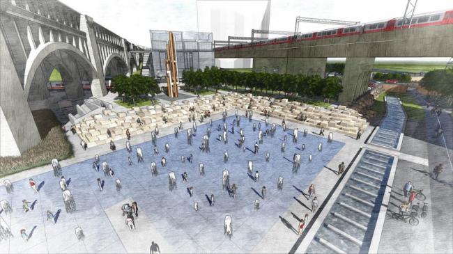 樓梯和電梯塔會將Detroit Superior 橋低層和高層的部分與這個公園結合起來,公園會位于這座橋高層部分(建于1918年)下面的幾層。這個方案也會合并165個停車場。