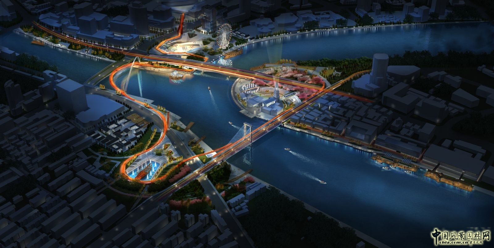 三江口夜景:突出連接三江六岸的高架步行橋和連接天一廣場的高架空間,著重打造三片區的特色夜景氛圍。環路宛如夜空中的彩帶串聯著教堂區的浪漫,慶安區歡樂,江夏區的熱烈。