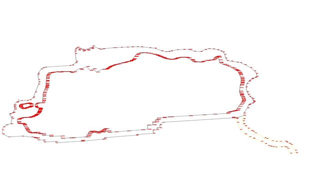 利用CAD中“多段線”工具連接各位置點(diǎn)(如下例圖),查詢面積屬性得出不規(guī)則圖形面積。