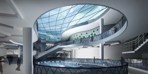 功能包括:運(yùn)動(dòng)員休息室、健身房、活動(dòng)室、內(nèi)部會(huì)議室(多功能)、小型羽毛球場(chǎng)等。輔館與主館間留有車行通道和聯(lián)接平臺(tái),既獨(dú)立分開又聯(lián)系密切。輔館與主館間尋求一種和諧統(tǒng)一、鬧靜分離的關(guān)系。從而保證在沒有演出和大型賽事的情況下輔館可以獨(dú)立使用。