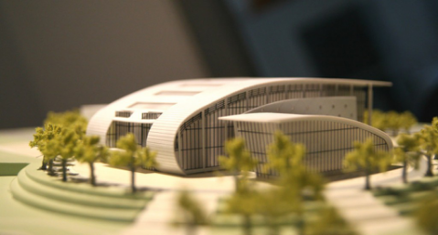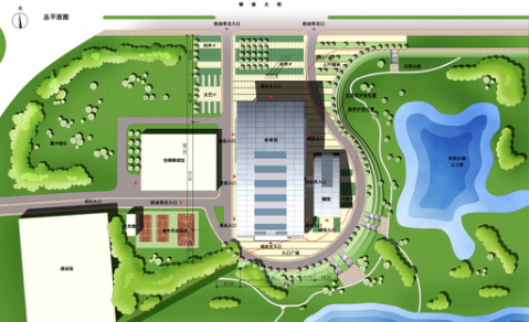 體育館的南側(cè)是一大片草坪,藍(lán)天白云下的建筑,表達(dá)出張力和動(dòng)感的形態(tài),兩條環(huán)抱曲線表達(dá)出“友誼第一,比賽第二”的內(nèi)涵。兩條曲線的屋檐下分別是主館和輔館。主館坐席數(shù)量為4024座,配套設(shè)施齊全,可以舉行乒乓球、羽毛球、籃球等多項(xiàng)賽事,還可以承辦大型文藝演出。輔館結(jié)合場(chǎng)地東側(cè)地形錯(cuò)落排布。