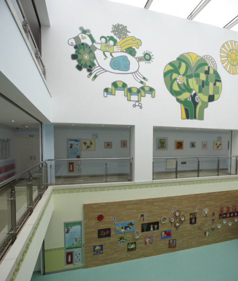 想送一個(gè)快樂的禮物,童年需要一個(gè)快樂天堂,試想一個(gè)孩童,到了適學(xué)的年紀(jì),離開父母的翼護(hù),獨(dú)立于伙伴之中,恐懼與好奇可想而知。可他牽著父母的手,沿經(jīng)四路北上,順著長(zhǎng)長(zhǎng)的步道前行,繞過(guò)茂密蔥蘢的樹林,豁然,一個(gè)神奇的積木房子出現(xiàn)視野。那是怎樣一個(gè)驚喜!剎那間,喜悅與好奇難以抑制,不自覺放脫父母的牽手,奔向快樂與夢(mèng)想的家園,一路護(hù)衛(wèi)的是父母溫柔的目光與淡淡的釋然。