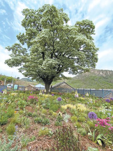密云新城子鎮(zhèn)的古流蘇樹周邊種植多種植物,擴大樹體營養(yǎng)面積的同時也營造出了多彩景觀。 朱松梅攝