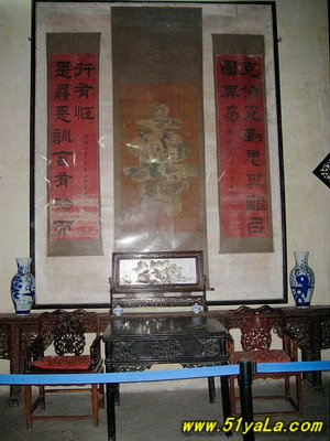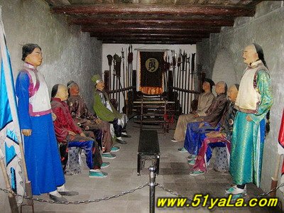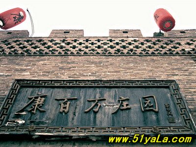 拾級而下便是莊園的中心區。盡管莊園的輪廓全貌保留得近乎完好,但必竟是一片廢墟,如今這里是村里小孩子們游戲的天地。孩子們的陣陣歡笑倒也不時地打破這沉寂的氣氛,給莊園帶來絲絲生機。這座古老的莊園實乃兒童們玩捉迷藏的好地方。 康家是個大家族,平日里總是賓朋滿堂。因此可想而知康家的廚房該是特別地大。這樣才能解決眾多人口的吃飯問題。廚房里干活的人多,自然是熱鬧非凡,噪雜無比。然而,其書房卻恰恰挨著廚房!這一點實在是讓人困惑不解,熱鬧噪雜的廚房和安詳靜宜的書房竟然互為惠鄰。這里建有兩個小亭子,還有一些枯萎、古老的花木,這些無形中給大院平添了幾分傷感。書房裝飾得簡單樸實,與大院里裝修得豪華富麗的畫室和臥房形成了鮮明的對比。 出書房,過幾間房屋,便是畫室。這里所有的家具上都鑲嵌有閃閃發光的寶石。東墻上鑲掛著明、清著名書法家的作品;西墻上則掛著一件清朝官服和一把康英奎平時練功習武時用的寶劍。 書房西邊是放置祖先牌位的靈堂。這里有許多精美的神龕和有關祖先生卒的碑刻。每塊碑刻都要花費一個石匠三個月的工夫。然而,引人注目的還是莊園里隨處可見的石柱子的底座。石柱子的作用是支撐房頂。這種建筑方式使石柱免受潮濕的侵蝕。 這些六邊形的底座是由多年形成的水晶石建造的,每個面上都刻有花卉和人物圖案。最富有想象力的是一個中間鏤空雕刻出來的人物,似乎整個石柱是由他們支撐起來的,人物雕刻栩栩如生,活潑可愛,整個結構又不失平衡。 不少有關民間傳說故事的石雕在大院里隨處可見,經歷了上百年的風吹雨淋,這些雕刻依然完好無損,雕刻的字體、輪廓依然醒目、美觀。這要歸功于選料的精細考究。 康家大院的一大奇觀是在普通生活區。生活區有一處書法雕刻集中的窯洞。 此窯洞在院子的最西頭,洞內兩側共有16塊與成人一般高大的石碑,上面雕刻著贊揚莊園主人的詩篇。贊美他“慈悲善良”、“慷慨大方”,風格迥異的中國書法在此各顯風采。 莊園的另一奇觀是窯洞窗戶上的木雕。鏤空的木雕給人們留下的是“橫看成嶺側成峰,遠近高低各不同”的絕妙印象。 主人的臥室獨領風騷,房間的天花板上涂刷得七彩斑斕,門窗的木雕也各具特色。主人的楠木床則是萬里挑一的精美絕倫的珍品。它是由當年最著名的5位木雕工匠費時3年雕刻而成。它的華美精致堪與皇帝的龍榻媲美。 床的對面是一個高1米,長1.5米的木車。它用來接送莊園的女眷們去廁所。在那個年代,女人要纏足以防長成大腳丫子。然而這三寸金蓮的小腳女人們無法長距離行走,而廁所是建在大院里偏僻的地方,所以這個木車就成了接送小姐、姑娘們往返廁所和臥室的專用交通工具。她們床前還放著幾雙前邊尖,后跟高,面上繡有精美圖案的小腳鞋子。 轉了幾個彎,便來到了飯廳。其右側放著一張供8人進膳的方桌。桌上所有的餐具:盤、碟、碗等都是八角形的。康家迷信,相信生死由命,富貴在天,所以只要有算命先生造訪,必定要用此餐具招待一番。他們相信這樣做會給全家帶來好運和財富。如有貴賓造訪,康家主人則會依照滿、漢傳統舉行大型的宴請,這種場合常常要用餐具108件。 盡管康百萬莊園外觀看似簡樸,缺乏貴族城堡的氣質,但它的內部裝飾華麗。今天建筑群保存得完善更為這處古老的莊園增添了無窮魅力。