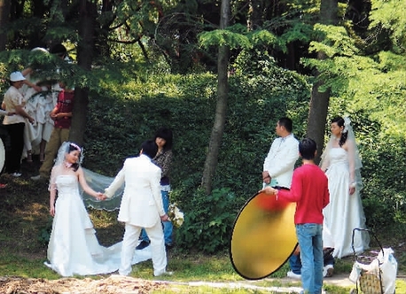 日前,在某公園的綠地上,新人排隊拍婚紗照。 公益性質的公園該不該讓新人“借景”拍婚紗照——這成了一個問題。一些公園對新人說“不”,一些公園則借機額外收取費用,價格從100元到300元不等,美其名曰“環境美化費”、“綠地踐踏費”,對“批量生產”婚紗照的影樓的甚至給出優惠價。 北京市公園管理中心相關負責人日前明確表示,本市擬出臺新規,11家市屬公園將被禁止入內拍攝婚紗照。 進園拍照先交300 “金九銀十”將迎來婚禮的又一輪高潮,擁有大片綠地的朝陽公園、擁有羅馬風情建筑的人定湖公園、擁有多種花卉的北京植物園等都是準新人瞄準的“婚紗外景地”。但并不是所有公園都能讓新人如愿。 天壇公園、北海公園、紫竹院公園、紅領巾公園等明確表示,不允許進園拍婚紗照。紫竹院公園表示,拍婚紗照會踩踏綠地,影響其他游客。天壇公園則因古代建筑和綠地較多,也不歡迎新人拍婚紗照。而更多的公園則選擇了額外收費的方式“賣景”。以龍潭湖公園為例,相關負責人翟主管表示,每對想進入龍潭湖公園拍婚紗照的新人需交納300元。該公園門票僅2元,也就是說,“借景”費用相當于門票的150倍。 公園“賣景”遭質疑 “公園里就不應該讓人進來拍婚紗照!”家住地壇公園附近的趙先生每天都要到該公園遛彎兒,經?吹叫氯藗冊诖伺臄z婚紗照,“好好的綠地,他們就站在上面拍照,草都被踩壞了!彼J為,高額的收費或許能阻止新人們進公園拍照的腳步。而另一種觀點則認為,高于公園門票價格數倍的“環境美化費”、“綠地踐踏費”合理性令人質疑。剛剛拍攝了婚紗照的王女士告訴記者,因為朝陽公園要額外收費,一氣之下去了不需買票的溫榆河邊。她認為,去公園拍婚紗照的人和普通游客沒什么區別,只是人多了一些,穿的衣服有些不同罷了,公園對此采取不同的收費標準,應有相關的依據才可以進行。 市屬公園“禁入”新規擬出臺 北京市公園管理中心宣傳處處長陳志強告訴記者,今年3月,該中心曾向社會公布,依據《北京市公園管理條例》規定,婚紗影樓(包括攝影工作室)的拍照活動屬于有組織的商業行為,在管理和限制范圍內。尤其是在天壇、故宮等文物保護單位進行攝影、錄像等商業活動,需出具文物局部門的同意函。陳志強表示,下一步準備出臺規定,在頤和園、天壇公園、北海公園、景山公園、中山公園、香山公園、北京植物園、北京動物園、紫竹院公園、陶然亭公園、玉淵潭公園等十一家市屬公園內禁止拍攝婚紗照。 肖丹