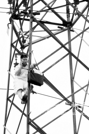 8月6日上午11點,杭州市艮山東路汽車東站附近,消防車、警車、眾多的群眾,導(dǎo)致這一帶交通十分擁擠。 原因很簡單,大家的視線都集中在了彭埠章家壩社區(qū)旁邊的高壓電塔上。 一名30多歲的男子,就在電塔上,離地約30米,十分危險。 此時,他已上去了兩個多小時,消防和110民警早已趕到現(xiàn)場,鋪好了安全氣墊,有關(guān)人員正在積極勸導(dǎo)這名“想不開”的男子。盡管這樣,爬塔男子絲毫沒要下來的意思,不停地打著手機,在高塔上轉(zhuǎn)來轉(zhuǎn)去。 圍觀的人群中,時不時發(fā)出唏噓聲。 “他爬之前,剪了工地上的電線!” 高壓電塔就在運河邊,位于一市政綠化工地的旁邊。 很多工友,連中飯也顧不上吃,都關(guān)注著高塔上的男子安危。“他以前也在這個工地上干,因為和大包工頭有經(jīng)濟上的糾紛,從去年就開始鬧了,一直沒辦法解決。沒想到他會做出那么危險的事。”一位穿紅色衣服的工友擔(dān)心地說。 相熟的老鄉(xiāng)介紹,這個男子姓王,32歲,紹興人,是一個小包工頭,因所要其承包的運河沿線園林綠化工程款項而與某市政園林公司發(fā)生經(jīng)濟糾紛。 白師傅,目前在工地負責(zé)澆筑主體設(shè)備。他說,上午8點半左右,男子爬塔前,就情緒激動,背個黑包,跑進跑出工地很多次。 “上午9點不到,我們正在澆混凝土,突然,沒電了,機器動不了了。”大伙發(fā)現(xiàn)情況不對,趕緊跑向配電箱,一檢查,才發(fā)現(xiàn)電線被人剪斷了。 為了重新接上線路,工程為此耽擱了大半個小時。“有什么事,大家好好解決,破壞公用設(shè)備,是不理智的。”事后,白師傅他們才了解到,就是爬塔的王某干的,覺得有點氣憤。 扔?xùn)|西,阻撓消防特勤施救 11點左右,見王某死活不肯下來,兩名消防特勤人員準備妥當(dāng)即爬塔救人。 可沒爬幾步,就沒法繼續(xù)了。 原來,王某發(fā)現(xiàn)了往上爬的特勤人員,極其不配合,開始向下扔?xùn)|西,阻撓人工施救。 “你們不要上來,要下來,我自己會下來!……”他邊仍東西,邊大聲呼叫。 接到短信,自己爬了下來 在消防特勤施救的同時,110民警也沒閑著,初步了解了情況后,他們先將某市政園林公司的負責(zé)人叫了過來。 “我們剛趕到時,初次和他對話,他就聲稱拿不到錢,就不下來。”彭埠派出所周教導(dǎo)員介紹,通過電話,民警和男子經(jīng)過了數(shù)次溝通和勸導(dǎo),他態(tài)度都很強硬。 人命關(guān)天,民警只能做市政園林公司負責(zé)人的思想工作。“你們之間如果真有沒結(jié)清賬,還是趕緊給他吧,否則后果不堪設(shè)想。”某市政園林公司的負責(zé)人稍作考慮后,安排人員去銀行打款。 12點05分,爬塔的男子接了一條短信后,開始慢慢往下爬。 眾人都松了口氣。 一分鐘后,王某落地,迅速被民警帶上了警車。 “我們不清楚,最后他為什么會答應(yīng)爬下來,但發(fā)現(xiàn)了手機里的短信,是他老婆發(fā)過來的,錢進賬了。” 周教導(dǎo)員表示,王某被帶回派出所內(nèi)后,會進一步調(diào)查,并將依照相關(guān)法律規(guī)定對其擾亂公共秩序的行為做出行政拘留的處罰。