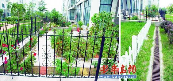 膠州市金色家園小區內很多居民向記者反映,該小區內開發商原搭建的私家花園,現在卻被居民毀壞得非常嚴重 。一些居民將原始的木制柵欄拆除,然后重新圈占,小區內的公共綠地被嚴重破壞。8月9日上午,記者聞訊趕到該小區時看到,在小區多棟居民樓周圍,一些原本用木柵欄圈建的小花園,現在已經被毀壞,居民們直接在原有的花園面積上向外擴建,有的業主直接用鐵藝欄桿向外擴出1米多遠。為了達到多占綠地的目的,許多業主還運來水泥、沙子和磚頭建圍墻,有的甚至把排水口都堵住了。