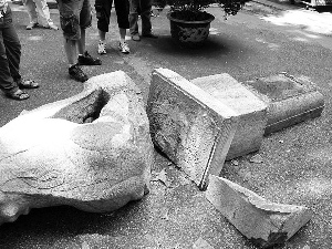 公安部門已介入調查 “心疼!金陵第一園(瞻園)門前的石獅被車撞碎了!它們原本是成對鎮守西花園的,現在只剩下一只孤零零立在那里,可惜了!”昨天,西祠胡同冒出的瞻園石獅被撞碎的帖子引起了網友們的關注。 昨天下午,記者來到瞻園門口,發現原本瞻園正大門門口的那對石獅,如今確實只剩一只,另一邊石獅的位置被幾個盆景取代。 400歲石獅被撞倒在地 “8月12日上午,一輛裝了柏油的城市工程車在瞻園大門前倒車,當時,大家都沒太在意。 只聽‘啪’一聲脆響,就看到大門口左邊的石獅倒在地上。石獅嘴巴掉了一大塊,尾巴也掉了一大塊,基座也和獅身分了家……”瞻園是當年朱元璋賜給徐達的府邸,全國重點文保單位,也是金陵第一園,目前瞻園的擴建工程剛完畢不久。 在這個“喜”事還沒來得及慶賀的節骨眼上,鎮守大門的石獅被撞碎了一只。提起“石獅”被撞的事,瞻園的負責人不愿意多說。但一位目擊者告訴記者,當時是城市工程車司機正在倒車,由于沒注意到瞻園門前的石獅,所以不小心撞到了它,導致石獅摔倒在地,還嚴重“毀容”,嘴巴鼻子都掉了。 據南京市文物專家介紹,被撞倒的石獅大概400余歲,在南京,像它這般年齡,這么有氣勢、雕刻這么精致的石獅還真不多,已經相當珍貴了。“徐達的王府門前一直有一對石獅給他鎮守府邸,規模比現在的稍微小一些。文革時期,這對石獅因為‘破四舊’不知所終。上世紀70年代,瞻園作為南京的第一園林要對外開放,沒有了鎮宅的石獅怎么辦?上世紀80年代,就把升州路的一個大戶人家門口的石獅搬了過來。” 文物專家說,這對石獅雖然是從升州路搬遷過來的,但它和瞻園差不多是同時代的,也是明代的石獅,當年把這對石獅放在瞻園門口就考慮到了“匹配”的問題,就連朝天宮大門前的那對石獅年齡都沒有瞻園的這對悠久,“朝天宮的石獅是清代的,比瞻園的石獅晚。” 公安部門已介入調查 雖然這對石獅是后期“遷居”瞻園大門前,但文物專家們認為,它們蹲守瞻園已近30年了,是瞻園的一部分。而肇事司機雖然不是故意的,但是已經損壞了文物,“在文物法里,破壞文物情節嚴重的要判刑。”據了解,目前公安部門已經介入調查此事了,一位文物專家說,肇事司機究竟會怎么處理還要看公安部門的意見。 至于已經破損的石獅,文物專家說,目前的文物修復技術可以讓那些碎片回到原位,“對它們進行修復,并進行‘整容’,但修復以后,還是會留下痕跡的,想和原來一模一樣不太可能。”
