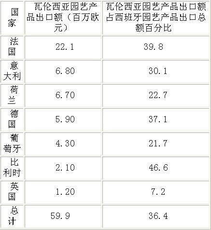 瓦倫西亞園藝產(chǎn)品出口情況: