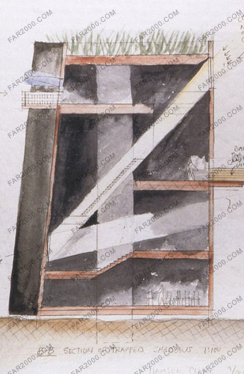 ![]() ![]() ![]() ![]() 據8月5日報道,昨天500名參觀者參加了挪威Hamaroy的Knut博物館開幕儀式。這座博物館是為挪威作家Knut Hamsun修建的。由Steven Holl事務所設計的博物館靠近這位作家的出身地。開幕儀式正值其誕辰150周年,不過他由于同情納粹,后期臭名昭著。 Holl的設計受到了Hamsun對人類思想復雜性的探索,以建筑語言表現出Hamsun的性格。根據Hamsun的小說,博物館設置了“空琴盒”平臺,觀景陽臺就像“挽著袖子的女孩擦拭黃色窗玻璃”的場景。 與Hamsun的生平一樣,這座博物館自從1994公布設計以來遭到了很大的爭議。當地有300篇文章發表,迫使這個設計一改再改,增加了一個社區會堂。這個2700平方英尺的建筑還有展覽區、一座圖書館、閱覽室和一座咖啡館。 Steven Holl事務所表示,博物館的概念是“像身體一樣構筑:看不見的勢力相互糾結”,從里到外都是如此。木質外墻用間隔的隱藏孔洞來突出,建筑的脊柱也用穿孔銅料建造,構成中間的升降梯。光線的對角線照亮了白色內部空間,一年的某些日子會穿越屋內的某些部分。