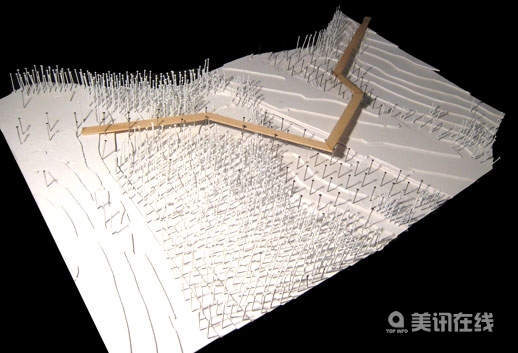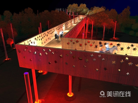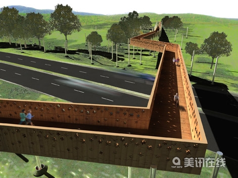 該項目的目的是建造一個與我們所熟知的大橋設計結構所不同的獨特的、更具人文關懷的人行橋,這不是給那些沒有私家車的人們做姿態(tài),而是將他們的出行體驗優(yōu)先定位,目的是避免建成一個不必要的、不可持續(xù)且無用的龐然大物。 設計師們?yōu)橐话愕男腥艘约吧⒉叫蓍e的人們提供了一個非常舒適的道路與一具大型景觀雕塑作品,該人行橋的設計是針對當前交通擁堵的狀況,并將這里與周圍的森林景觀聯(lián)系在一起。他們努力創(chuàng)建了一個具有獨特形象的場所,一個將車輛、行人、橋梁與鄉(xiāng)村環(huán)境結合在一起的焦點。從設計圖上可以看出,這是一個獨特的怡人空間,一個安全的人行橋,一個城市和地區(qū)的地標和港口,為城市的復興亮起了燈塔。因此,這是一個美麗迷人的場所,可以激發(fā)人們不斷在這里散步休閑。 設計有兩種元素構成:鋼結構的“樹木”與木板帶狀人行道,他們好像是天然的景觀一樣,只不過通過木架結構被抬高了。這個簡單、技術含量低的可持續(xù)人行橋在建造時盡量影響到周圍的森林。橋欄采用木材捆扎而成,橋面也為木板包覆的,并裝飾了一些葉形圖案,在晚上點亮時會閃閃發(fā)光。鋼結構“樹”架在了人行道的兩側,在晚上可以做路燈用,顯示了設菲爾德市的重工業(yè)城市特點,而橋將成為設菲爾德港口別具一格的新地標和象征。