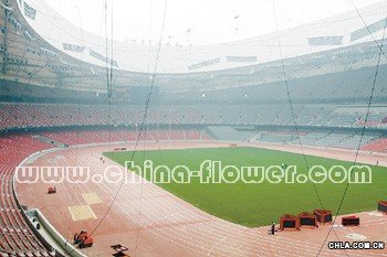 近日,北京奧運會主會場國家體育中心(鳥巢)內的模塊移動式草坪鋪設完成,現(xiàn)已進入測試階段。坪占地7811平方米,由5460塊1.159米×1.159米的草坪塊組裝而成,每個草坪塊高30厘米,由基座盒和草坪兩部分構成,其中基座盒高22厘米,草坪高8厘米。據(jù)介紹,草種為三個草地早熟禾品種混配。草坪的建植工程由北京華體集團承擔。