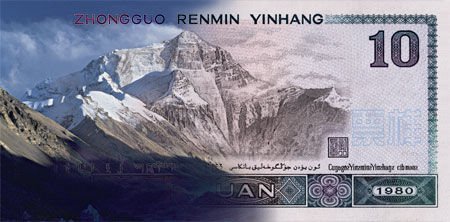 珠穆朗瑪峰的地位正如它的高度,是永遠不能被忽視的。第四套人民幣中10元的紙幣選擇它做背面圖案。珠穆朗瑪峰位于我國和尼泊爾交界的地方,從中國境內(nèi)眺望珠峰,它像一座金字塔,威嚴地聳立在一排雪峰之間。這張錢幣整體色調(diào)以藍色為主,設(shè)計它的時候就考慮到珠峰適合這種冷色調(diào)來表現(xiàn)。