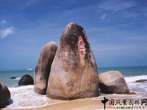 南天一柱位于海南島南部海岸的“天涯海角”風景區里。從這里向南就是茫茫大海,古人認為是中國的最南端,于是有“天涯海角”之稱。相傳這里的一塊2米高的巨石曾是支撐天空的柱子的一部分,在共工撞不周山時碎掉了,清代官員范云梯在巨石上寫下“南天一柱”四個大字。錢幣上的圖案做了藝術處理--讓巨石屹立在大浪之中,顯得雄渾壯觀,實際上這塊石頭的位置是在沙灘上?茖W家說近年氣候變暖海面上升,也許有一天2元人民幣上的圖案會變成現實。